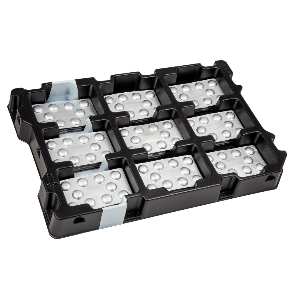 Plateau thermoformé en PS 2,0 mm noir avec bande de couleur.